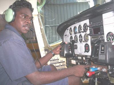 Merrill grew up at Mirrŋatja and Donydji in Yolŋu Land (east Arnhem Land). There was no school available for Merrill to attend until he was 16 years old. In 2002 a teacher at the school on Elcho Island organised for a group of young homeland men and women to stay with him inorder to gain their car licences. During their stay Merrill asked the teacher to help him find a way to develop his mechanical skills. Merrill proved his determination to develop his skills by actively participating in all VTE training offered to him. But unfortunately VTE training rarely leads to real jobs. Merrill was keen to leave his home and attend a secondary school, but this would not have been a positive move. The most viable option was for Merrill find a billet and work place where Merrill could develop his skills in a supportive environment. After three years of negotiation MAF (Missionary Aviation Fellowship) agreed to take Merrill for ten weeks work experience. School fonts agreed to paid a contribution towards the wages for Merrill's supervising engineer.